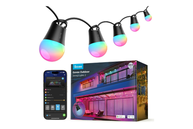 Why it’s a pick: The Govee Outdoor String Lights 2 offer more lights than the competition, for less money. Available in 48-, 96-, and 144-foot strands, these smart lights are a great choice if you have a lot of ground to cover. They also feature a traditional bulb shape if you prefer the classic string-light style. The Govee app offers customizable white-light color temperature, color-changing capabilities, and a range of themes and Scenes, along with more sophisticated settings. Those advanced features and options may be overwhelming for some people, but you can ignore them and still get satisfying results with the entry-level functions.