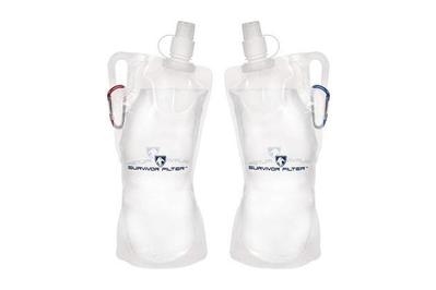 In addition to a metal water bottle, it’s good to have a collapsible water bottle or two. This kind of bottle weighs almost nothing and takes up less and less space as it empties. We tested four popular models and recommend Survivor Filter Collapsible Canteens. We found that there isn’t much in terms of build quality to distinguish one collapsible water bottle from the next (they all survived our 5-foot drop test), but the Survivor Filter Collapsible Canteen design has a few other features that make it stand out.