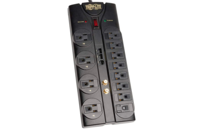 A top view of our pick for the best surge protector, the Tripp Lite Protect It 12-Outlet Surge Protector TLP1208TELTV.
