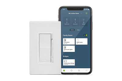 Why it’s a pick: The Leviton Decora Smart No-Neutral Dimmer DN6HD doesn’t need a neutral wire, so it should work just fine no matter how old a home’s wiring is. We also like that the dimmer looks and functions like any non-smart dimmer, making it easy to operate lighting at the switch location. It does require a $20 plug-in Wi-Fi bridge, which creates a wireless network to make up for Wi-Fi dead zones in your home. The hub can accommodate up to 25 no-neutral-wire dimmers and switches, which you can control individually or in one or more groups of devices, as well as schedule to go on or off at specific times and dimming levels.